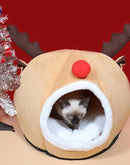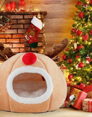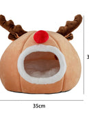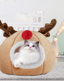 Christmas Cat Bed Warm Plush Elk-shaped Cat House Kitten Bed Mats Tree Hole-shaped Cat Sleeping Nest