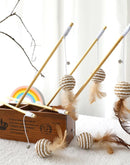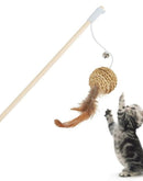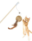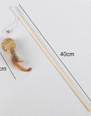 Cat Teaser Toy Wooden Rod Fake Feather with Small Bell Decor Wooden Stick Interactive Toy for Cat Pet Supplies Random Style 1pcs
