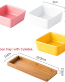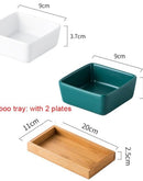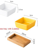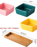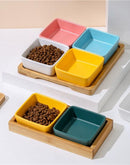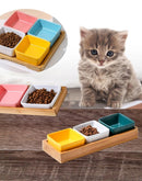 2/3PC Household Supplies Ceramic Cat Bowl Dish with Bamboo Stand No Spill Cat Food Water Feeder Small Cat Dishes