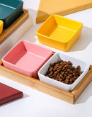 2/3PC Household Supplies, Ceramic Cat Bowl, Dish with Bamboo Stand, No Spill Cat Food Water Feeder, Small Cat Dishes