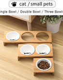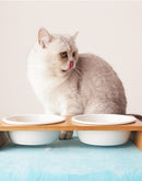 Cat Feeders Bowl Cat Food Water Bowl 1/2/3 Bowls Ceramic Tableware Bamboo Frame Antiskid Cat Supplies Cat Feeding Bowl
