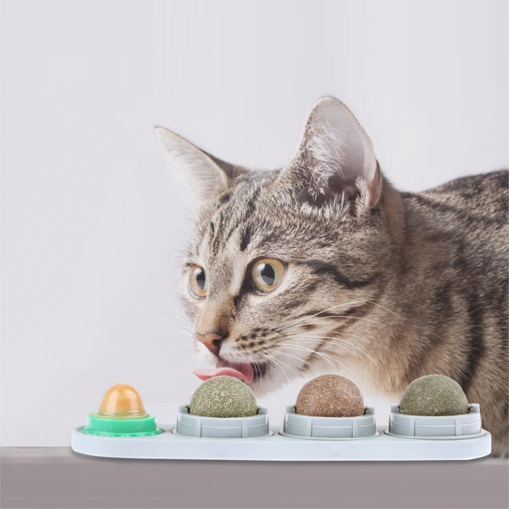4pcs/set Catnip Ball Set Cat Treat Toys Snack Self-Adhesive Teething Molar Catnip Ball Rotated Wall For Cats Mount Toy