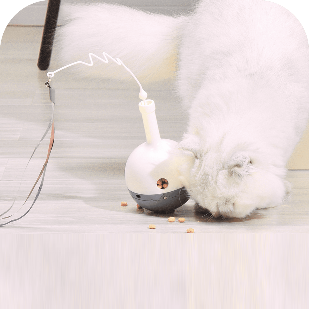 Cat Kitten Ball Toy Automatic Food and Treat Dispenser Windmill Cat Toy Pet Teaser Wand Interactive Self Rotating Ball With Feather